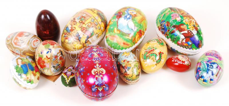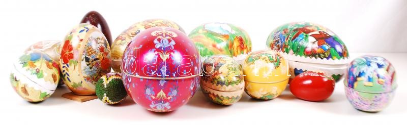 Leírás: Fém, fa, papír, kerámia, klf méretű tojások