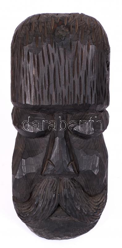 Leírás: Férfi fej, faragott és festett fa, jelzés nélkül, 32×13 cm