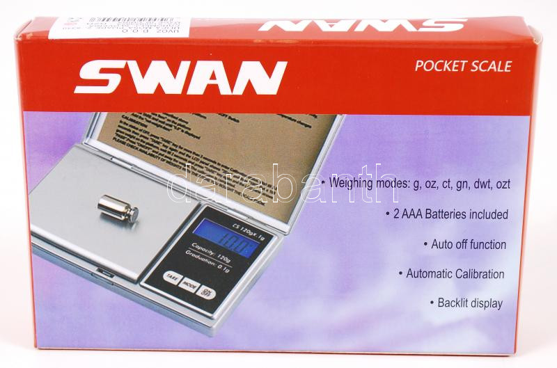 Leírás: Swan ékszerészmérleg század gramm pontosság, 0,01-100g új állapotban elemmel, eredeti dobozban / Jeweller's scales