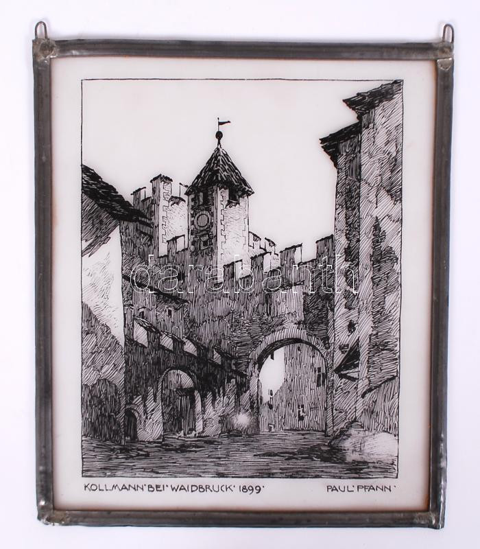 Leírás: Waidbruck üvegkép, keretben, 27×22 cm