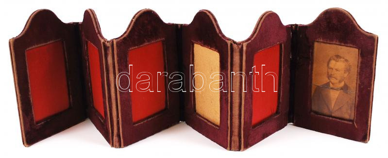 Leírás: cca 1890 6 férőhelyes kihajtható bársony fotótartó vizitkártya méretű fotóknak / Photo holder