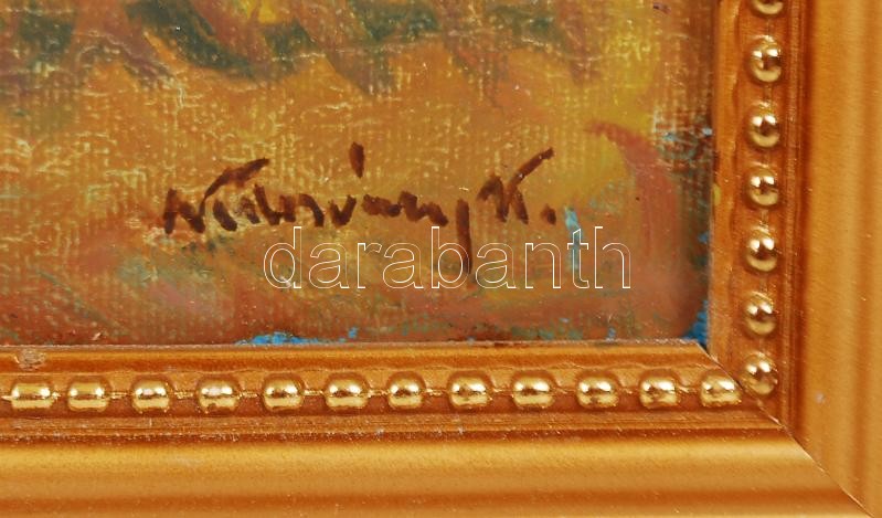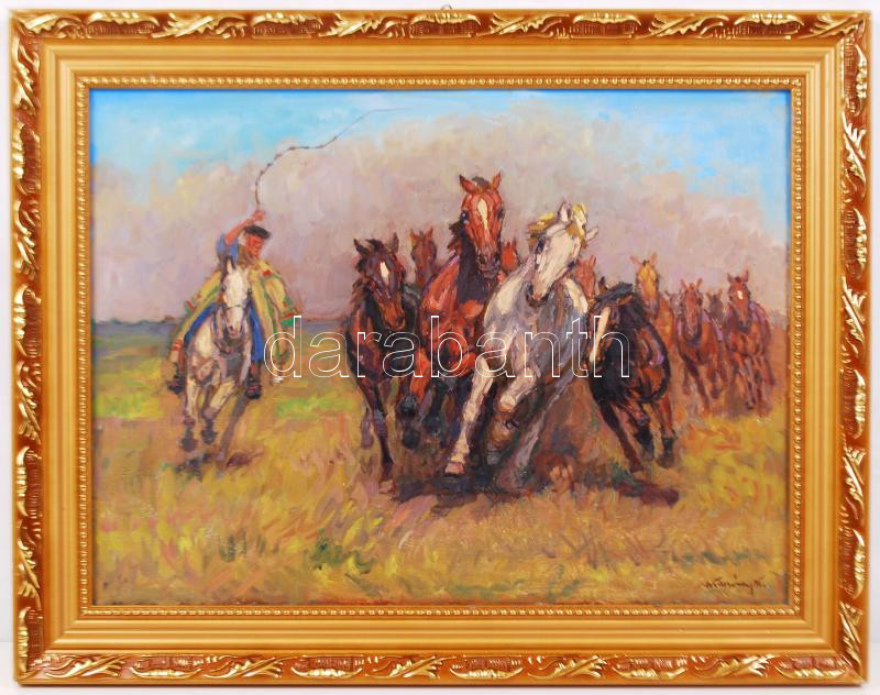 Leírás: Kolozsváry Kamillo (1936-): Lóhajtás. Olaj, vászon, jelzett, keretben, 30×40 cm
