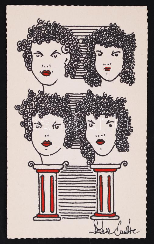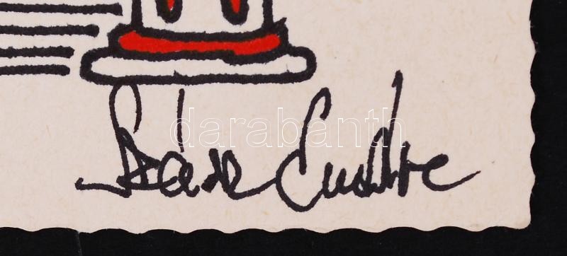 Leírás: Szász Endre jelzéssel: Illusztráció. Hátoldalán Szász Endre saját kezű soraival 9x16 cm