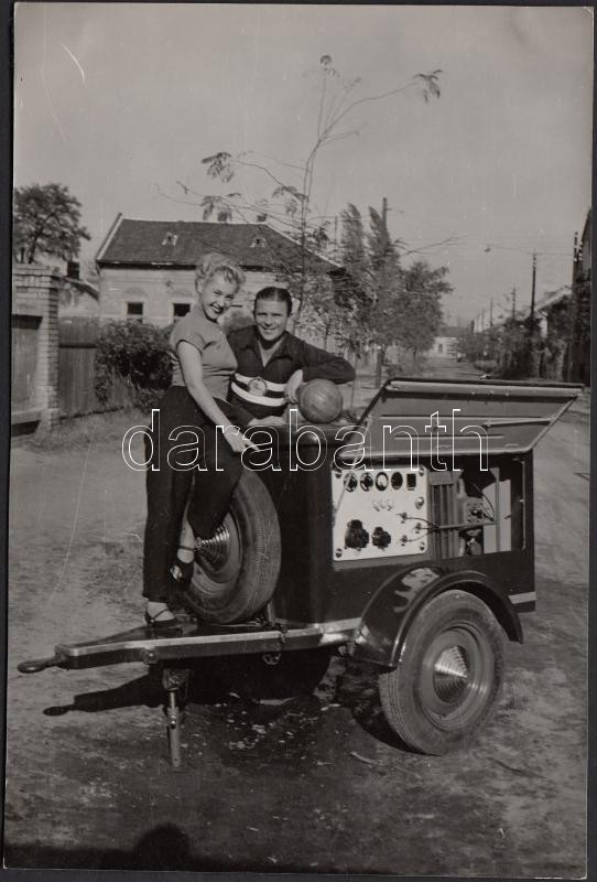 Leírás: cca 1950 Puskás Ferenc a generátoron 12x18 cm