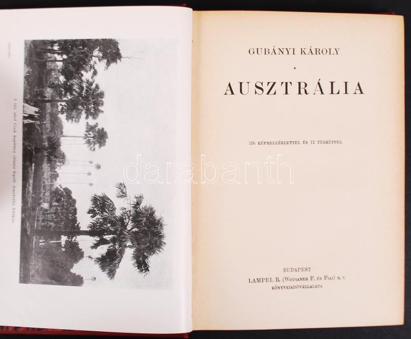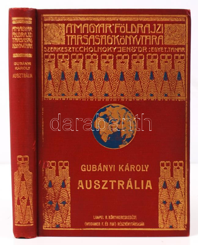 A Magyar Földrajzi Társaság könyvtára: Gubányi Károly Ausztrália ( 16 műmelléklettel, 12 térképpel, 100 ábrával Lampel ( Wodianer F. és Fiai), Bp. 1911. Lampel. Számos illusztrációval. Kiadói, aranyozott vászonkötésben. Jó állapotban