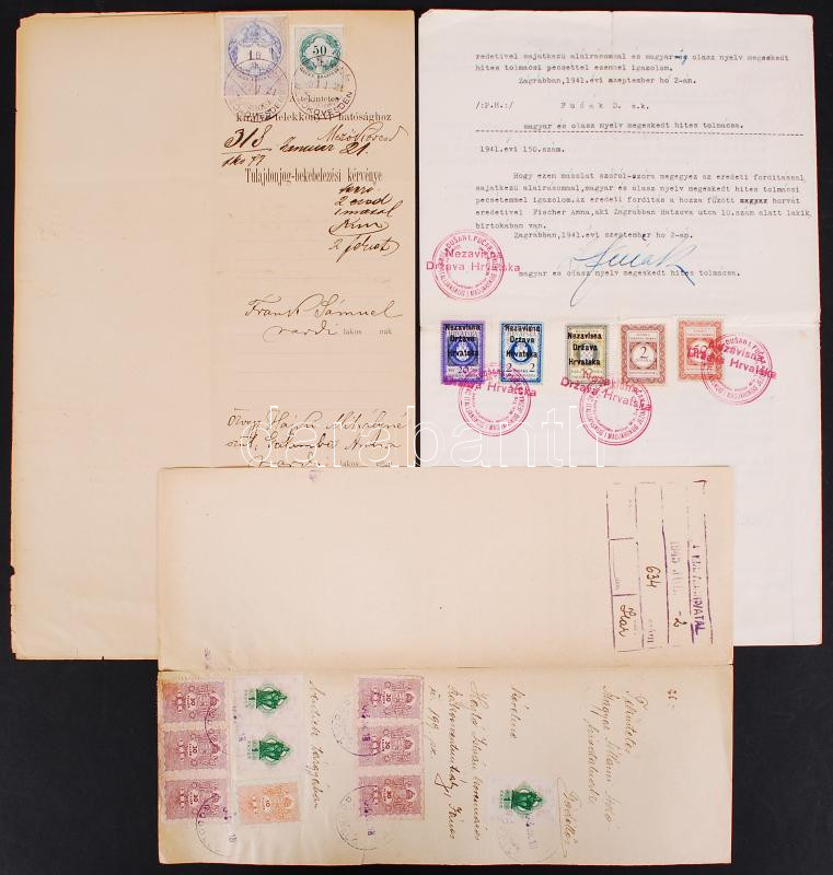 Leírás: 1900-1945 3db hivatalos irat okmánybélyegekkel