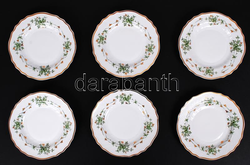 Leírás: Hollóházi Erika süteményes tányér készlet, jelzett, matricás, hibátlan, d:19 cm