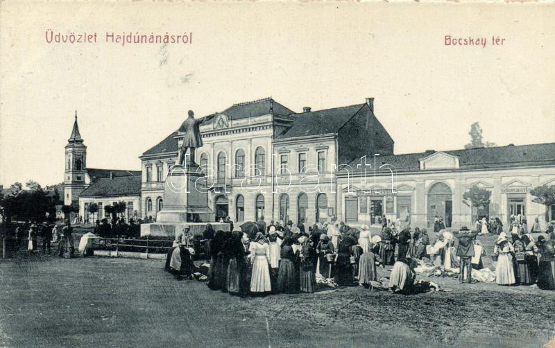 Leírás: Hajdúnánás Bocskai tér, Ercsey Károly üzlete, gyógyszertár, piac (kis szakadás / small tear)