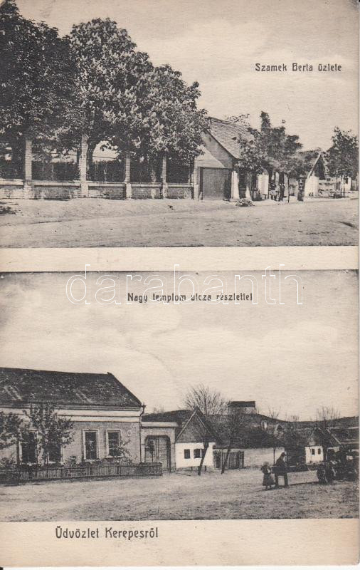Kerepes, Szamek Berta üzlete, Nagy templom utca https://www.darabanth.com/hu/194-Gyorsarveres/194.0/Kepeslapok/Magyarorszag~400005/Kerepes-Szamek-Berta-uzlete-Nagy-templom-utca~II743292