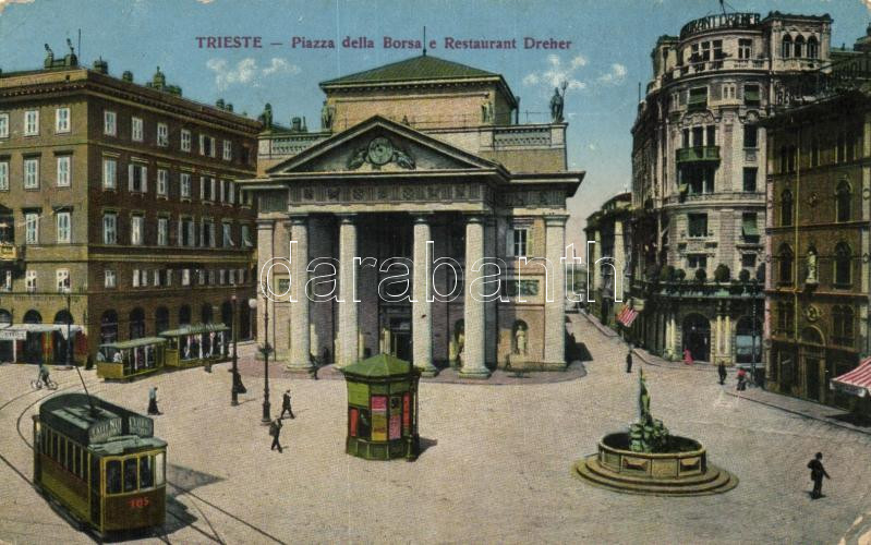 Trieste, Piazza della Borsa, Dreher restaurant, tram (fa) https://www.darabanth.com/hu/194-Gyorsarveres/194.0/Kepeslapok/Olaszorszag~600124/Trieste-Piazza-della-Borsa-Dreher-restaurant-tram-fa~II737988