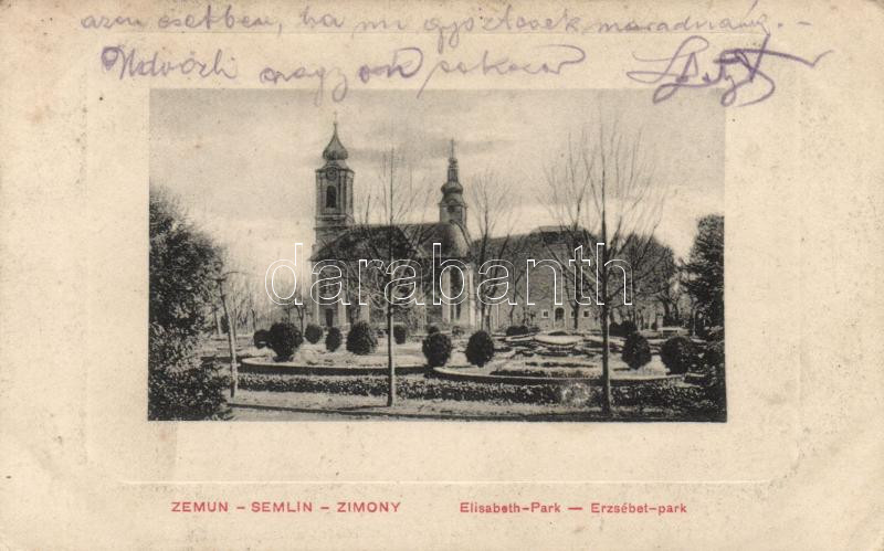 Leírás: Zimony, Erzsébet park, church (wet damage)