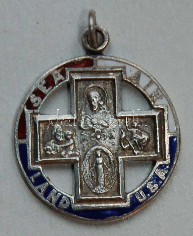 Amerikai Egyesült Államok DN "Négy irányú medál - Föld, tenger, levegő, USA" zománcozott Ag vallási medál (7g/0.925/27mm) T:2