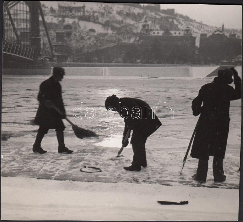 Leírás: 1933-1935 Kinszki Imre (1901-1945): Jégkaparók. Vintage fotó, hátoldalán szerzői pecséttel jelzett, 11x16cm