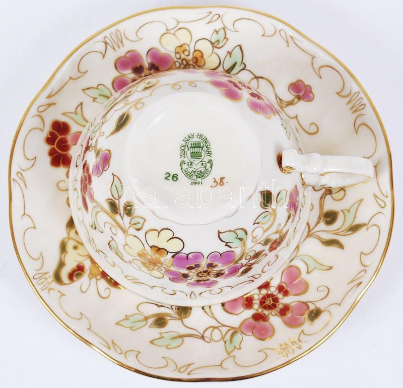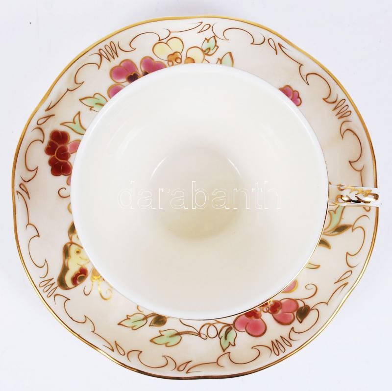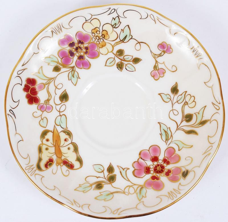 Zsolnay pillangó mintás mokkás csésze és csészealj, kézzel festett, jelzett, hibátlan/