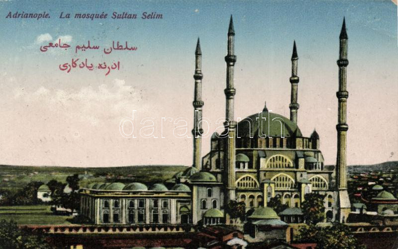 Edirne, Adrianople; Selim's mosque https://www.darabanth.com/hu/195-Gyorsarveres/195.0/Kepeslapok/Torokorszag~800149/Edirne-Adrianople-Selims-mosque~II745602