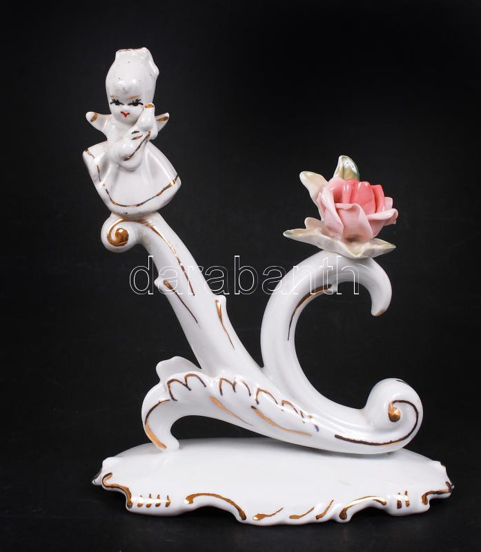 Leírás: Hollóházi porcelán dísz Ens rózsával és egy angyalkával /