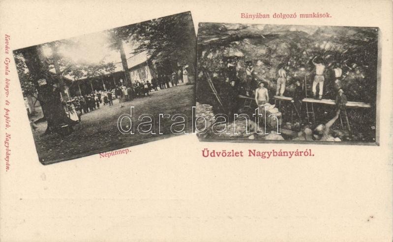 Leírás: Nagybánya, népünnep, bányában dolgozó munkások / mine interior