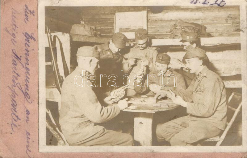 K.u.K. military, soldiers playing card, photo glued to postcard (EK) https://www.darabanth.com/hu/196-Gyorsarveres/196.0/Kepeslapok/Kartya~800096/KuK-military-soldiers-playing-card-photo-glued-to-postcard-EK~II757165