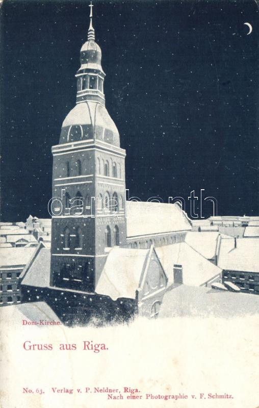 Riga, dome at night (small tear) https://www.darabanth.com/hu/196-Gyorsarveres/196.0/Kepeslapok/Lettorszag~800039/Riga-dome-at-night-small-tear~II752835