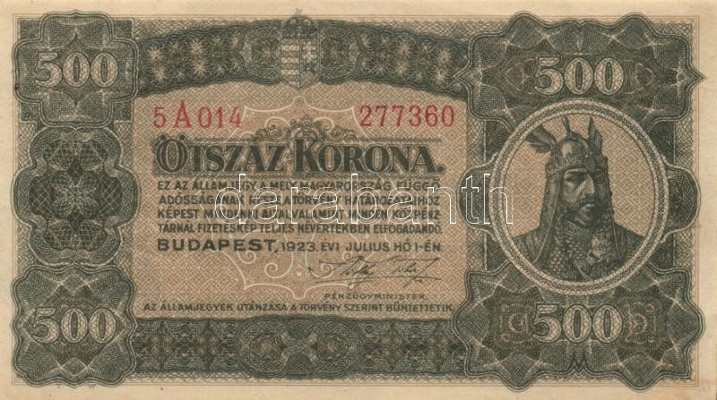 Leírás: 1923. 500K T:II (hajtatlan, sarokhajlás)