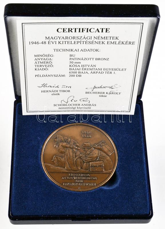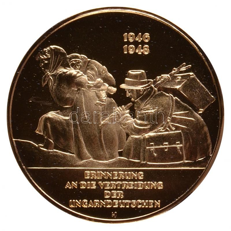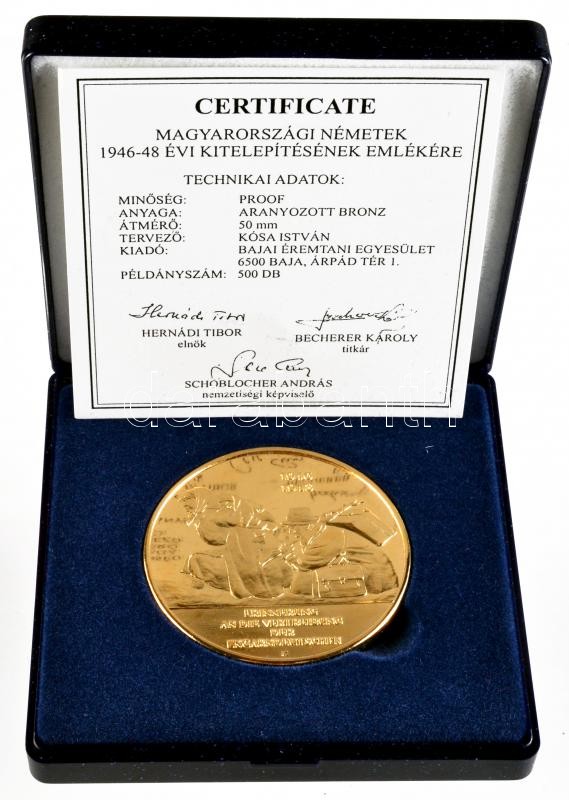 Kósa István (1953-) 1989. "Magyarországi Németek 1946-48 évi KitelepÃtésének Emlékére" patinázott Br emlékérem (50mm) + aranyozott Br emlékérem (50mm) mindkettÅ‘ dÃsztokban és tanúsÃtvánnyal T:1,PP Csak 200/500db!