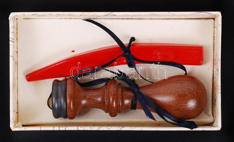 Leírás: Bortoletti modern pecsétnyomó (Zs.M. monogrammal) és viasz díszdobozban leírással /