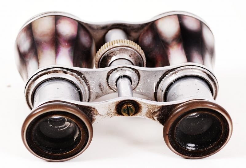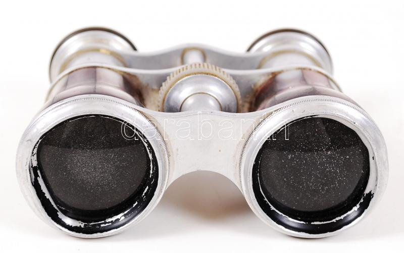 Leírás: Gyökházberakásos színházi látcső, fém, jelzés nélkül, 9×8 cm