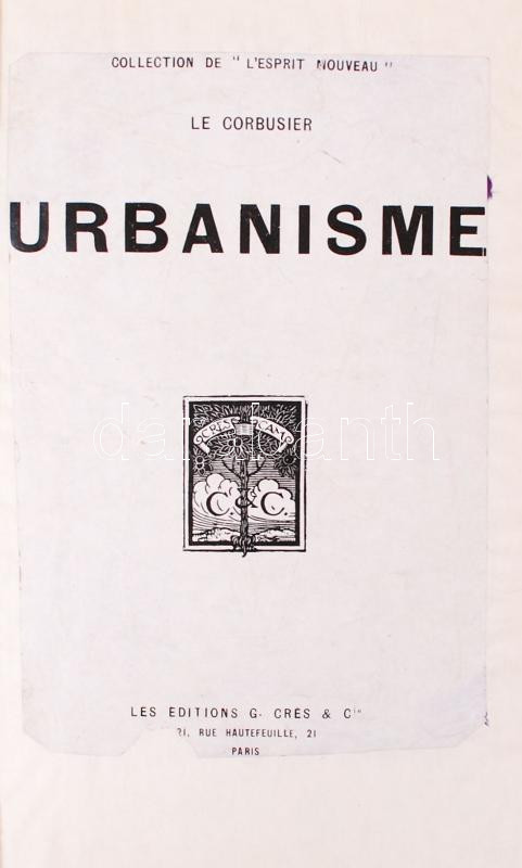 Le Corbusier: Urbanisme. Paris, 1925. Átkötött példány, roncsolt, csúnyán javított címlappal, a könyvtest hibátlan / in corded binding, corrected title-page, body is immaculate, 15x24cm.
