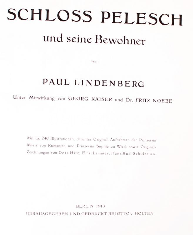 Paul Lindenberg: Schloss Pelesch und Seine Bewohner. Berlin, 1913. Aranyozott vászonkötésben, a gerincen sérülés / Small injury on the canvas binding, 180p., 23x29cm.