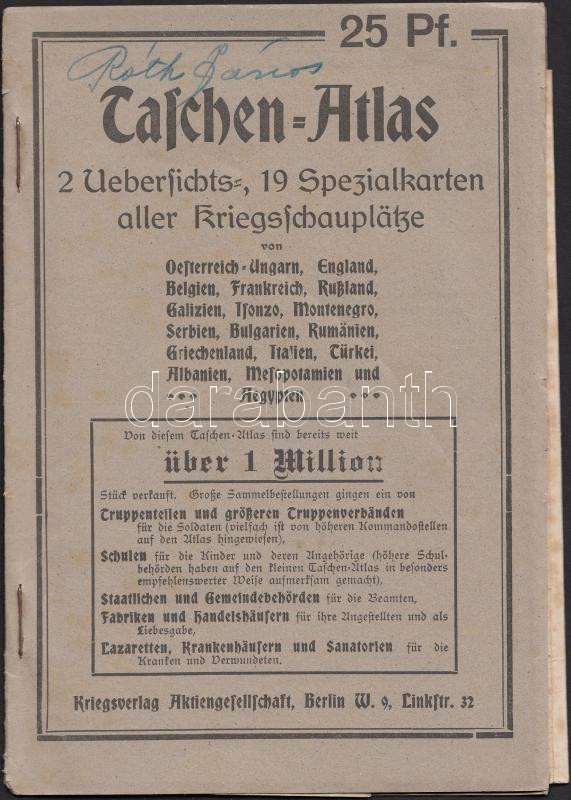 1916 Háborús atlasz 32 kis térképpel / War atlas with 32 small maps https://www.darabanth.com/hu/197-Gyorsarveres/197.0/Festmeny-mutargy-papirregiseg-egyeb/Militaria~600025/1916-Haborus-atlasz-32-kis-terkeppel-War-atlas-with-32-small-maps~II762749