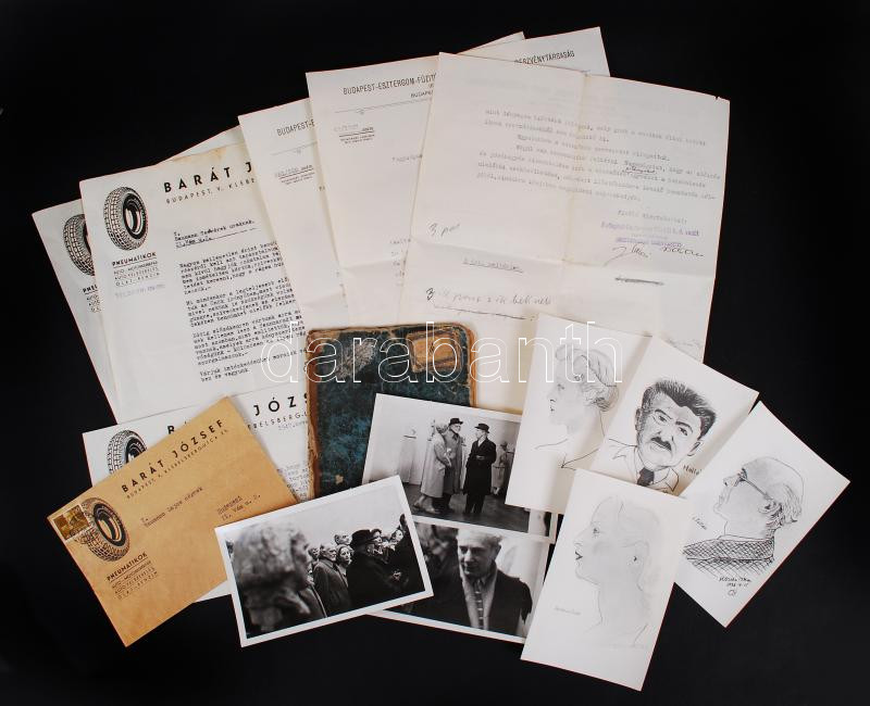 Leírás: cca 1884-1920 Okmány tétel: munkakönyv, fejléces levelek, meghívók, karikatúra fotók