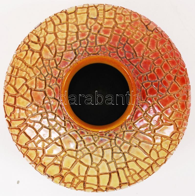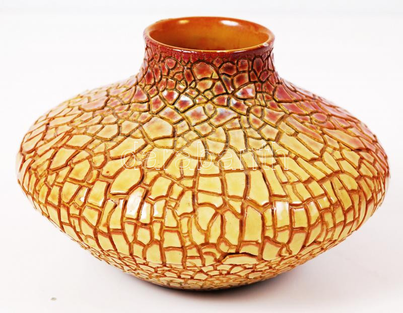Leírás: Zsolnay repesztett mázas váza, jelzett, apró lepattanásokkal, m:10 cm, d:16 cm