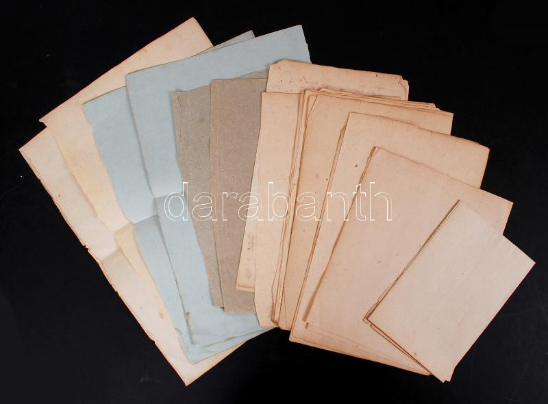 Leírás: cca 1800-as évek Fehér és halványzöld színű vízjeles papírok (22 db).