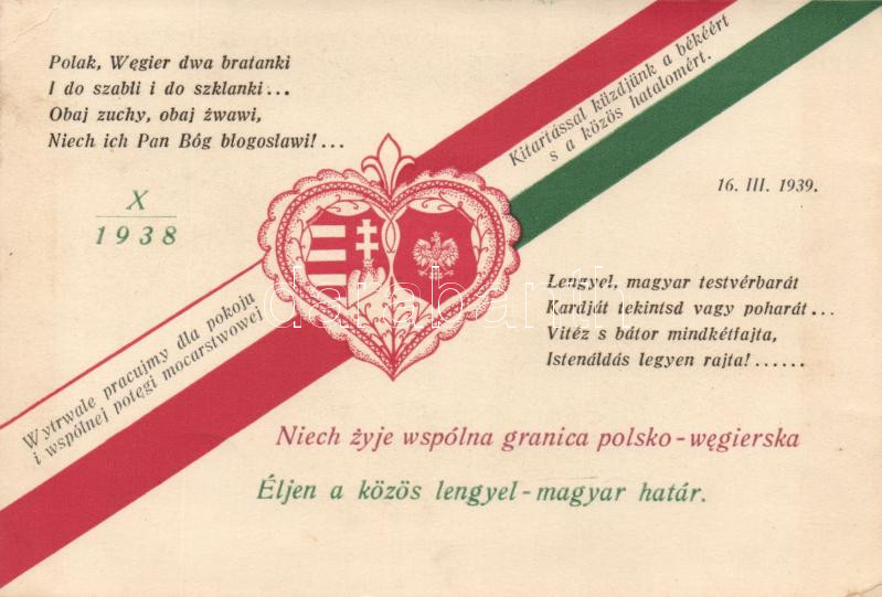 Leírás: 1939 'Polak, Wegier dwa bratanki - Lengyel, magyar testvérbarát...' közös lengyel-magyar határ (EK)