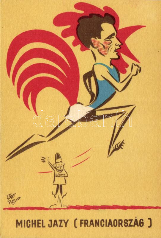 1966 Michel Jazy, sport propaganda, humour s: Szepes https://www.darabanth.com/hu/197-Gyorsarveres/197.0/Kepeslapok/Sport~800416/1966-Michel-Jazy-sport-propaganda-humour-s-Szepes~II759865