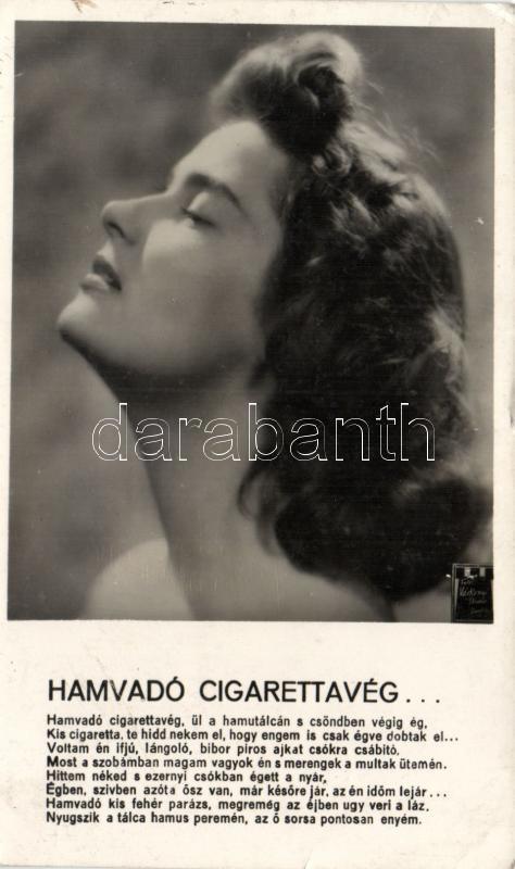 Karády Katalin, Hamvadó cigarettavég... (EK) https://www.darabanth.com/hu/197-Gyorsarveres/197.0/Kepeslapok/Szinesz~800419/Karady-Katalin-Hamvado-cigarettaveg-EK~II764389