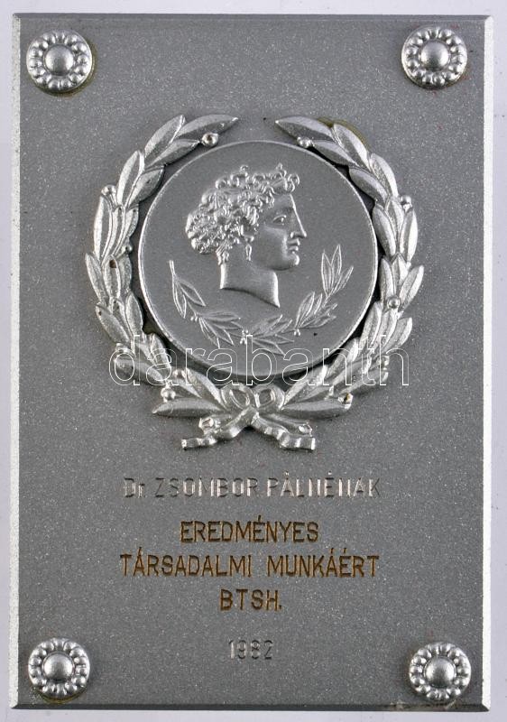 1982. Eredményes Társadalmi Munkáért ezüstözött plakett adományozói tokban + 1984. A Budapesti Természetbarát Szövetség fém plakettje talapzaton a Budapesti Természetjárás Fejlesztéséért + 2db fém plakett A Budapesti Természetbarát Szövetség VI. ötéves terve sikeres megvalósításáért T:1,1-