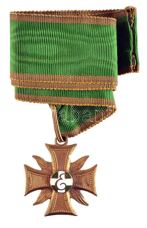 Leírás: Azonosítatlan külföldi zománcozott egyházi kitüntetés zöld mellszalagon T:2