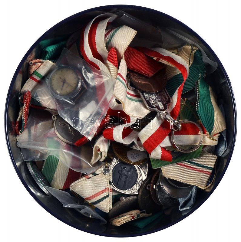 Leírás: Kör alakú doboznyi vegyes sportérem és emlékérem tétel T:vegyes