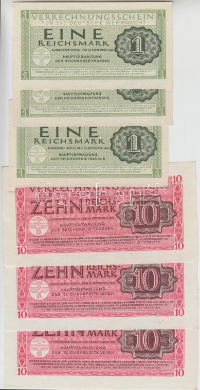 Leírás: Német 3.Birodalom/Deutsche Wehrmacht (Német Véderő) 1944. 1M (3x) + 10M (3x) T:I-,II (hajtatlanok)