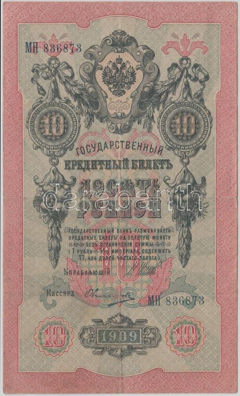 Russia 1912-17. 10 ... https://www.darabanth.com/hu/197-Gyorsarveres/197.0/Numizmatika/Kulfoldi-bankjegyek~400011/Oroszorszag-1912-17-10R-2x-szign-Shipov-TIII-3Cbr3ERussia-1912-17-10-Rubles-2x-sign-Shipo~II760911