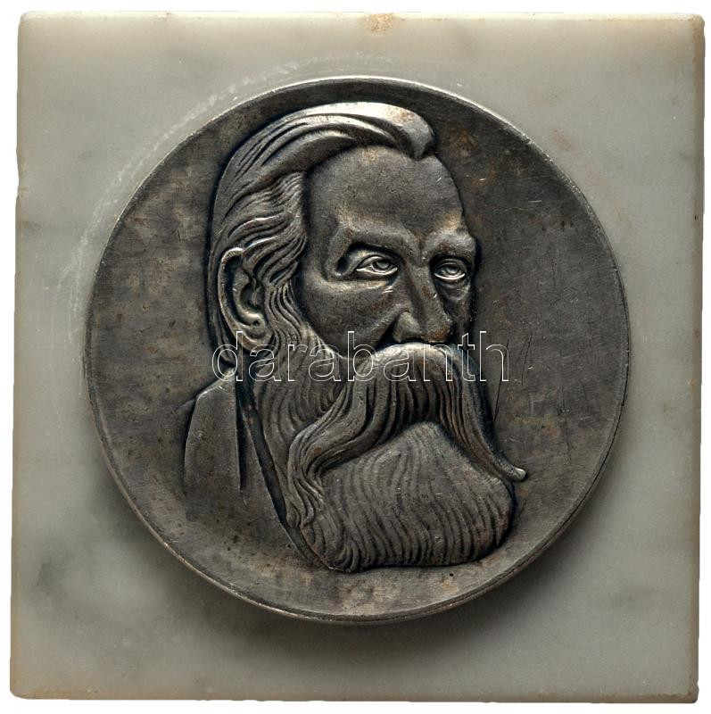 Szovjetunió DN Azonosítatlan, férfit ábrázoló szocialista fém plakett (59mm) márvány talpon, jelzetlen (75mm)T:2-