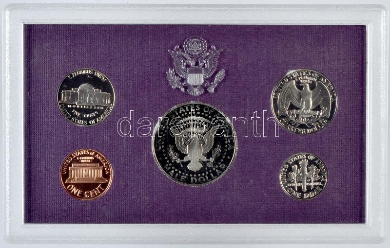 Amerikai Egyesült Államok 1992S 1d, 1c, 5c, 1/4$, 1/2$ "Kennedy" 5klf dísztokban Proof szett tanúsítvánnyal dísztokban T:PP