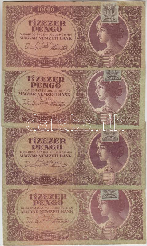 Leírás: 1945. 10.000P bélyeg (4x) egyik eltolódott nyomattal T:II-,III