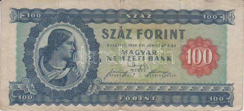 Leírás: 1946. 100Ft eltolódott nyomattal T:III,III-