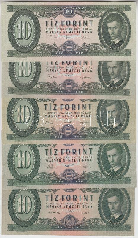 1949-1975. 10Ft (5x) T:I-III https://www.darabanth.com/hu/197-Gyorsarveres/197.0/Numizmatika/Magyar-bankjegyek~400007/1949-1975-10Ft-5x-TI-III~II759343