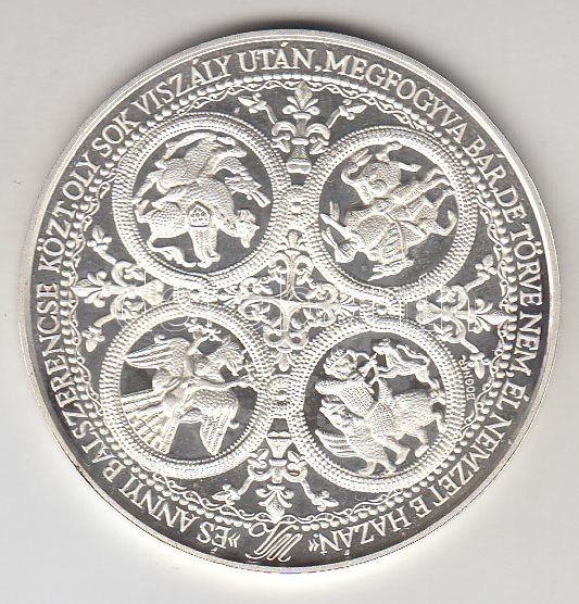 Bognár György (1944-) 1996. "Millecentenárium 896-1996" Ag emlékérem (... https://www.darabanth.com/hu/197-Gyorsarveres/197.0/Numizmatika/Magyar-emlekveretek~400009/Bognar-Gyorgy-1944-1996-Millecentenarium-896-1996-Ag-emlekerem-311g099942-5mm-disz~II764116