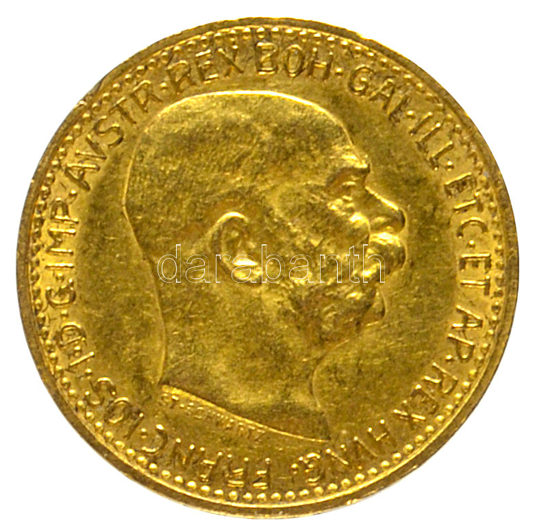 Austria 1912. 10 Kronen Au "Franz Joseph I" (3.41g/0.900) restrike C:XF edge error