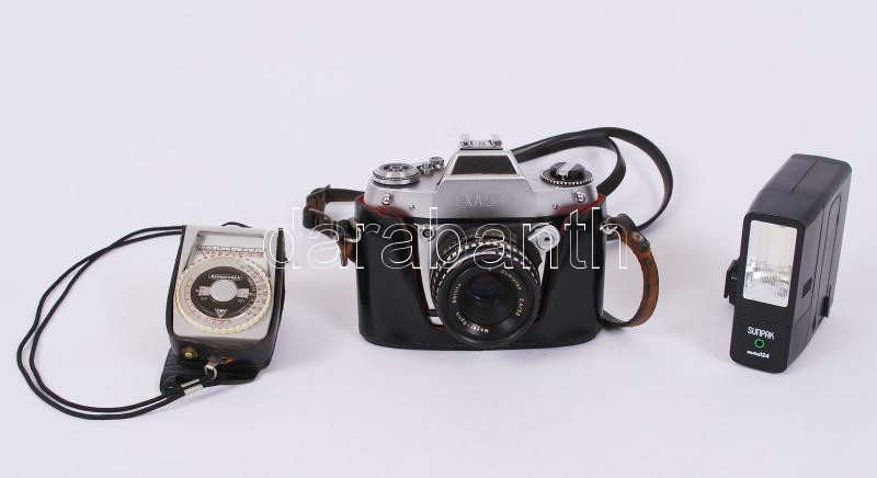 Exa 500 fényképezőgép, tokban, vakuval, fénymérővel https://www.darabanth.com/hu/198-Gyorsarveres/198.0/Festmeny-mutargy-papirregiseg-egyeb/Fenykepezogepek-kamerak-kellekek~200020/Exa-500-fenykepezogep-tokban-vakuval-fenymerovel~II767612