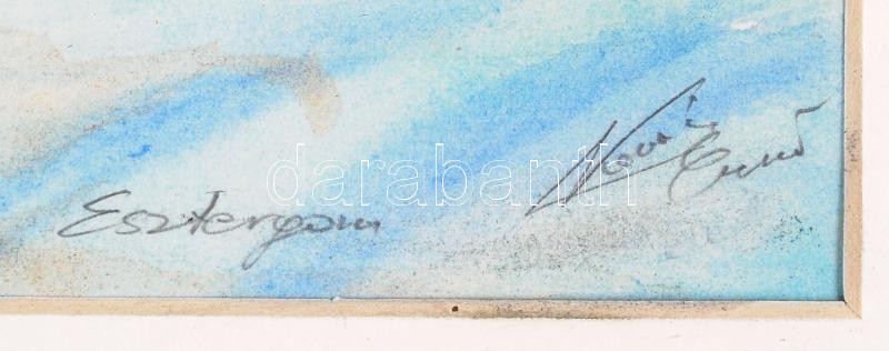 Leírás: Kovács Ernő: Esztergom. Akvarell, papír, jelzett, üvegezett keretben, 16×27 cm